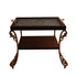 This elegant tray table combines vintage charm with modern functionality. The square table top features a beautiful, intricate gold floral design etched into the glass, adding a touch of luxury. The table is supported by a sturdy wooden frame with ornate metal accents, creating a striking contrast. The lower shelf provides additional storage space for books, magazines, or decorative items. Perfect for adding a touch of vintage flair to your living room or bedroom.